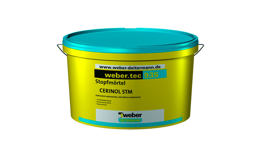 weber.tec 935 является готовым сухим раствором из высококачественных минеральных волокон, не содержащих хлора минеральных заполнителей и гидравлических вяжущих веществ для замыкания швов, трещин, мест соединения и устранения дефектов от протекания воды. Материал наносится методом шпаклевания или "трамбования" заполняемых мест. weber.tec 935 является материалом стойким на гниение, а благодаря отсутствию в его составе соединений хлора и щелочной среде готового материала предохраняет от коррозии. Высококачественные компоненты из волокна имеют свойство разбухания под воздействием воды. weber.tec 935 имеет сцепление практически с любым минеральным основанием.